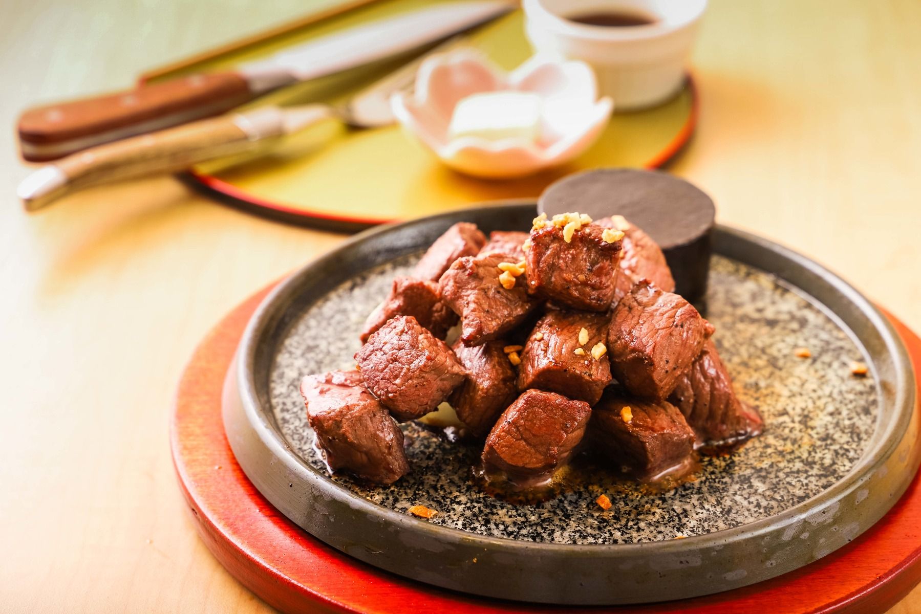 - After cooking, let the Wagyu filet cubes rest for about 5 minutes before serving. This allows the juices to redistribute, keeping the meat tender and juicy.